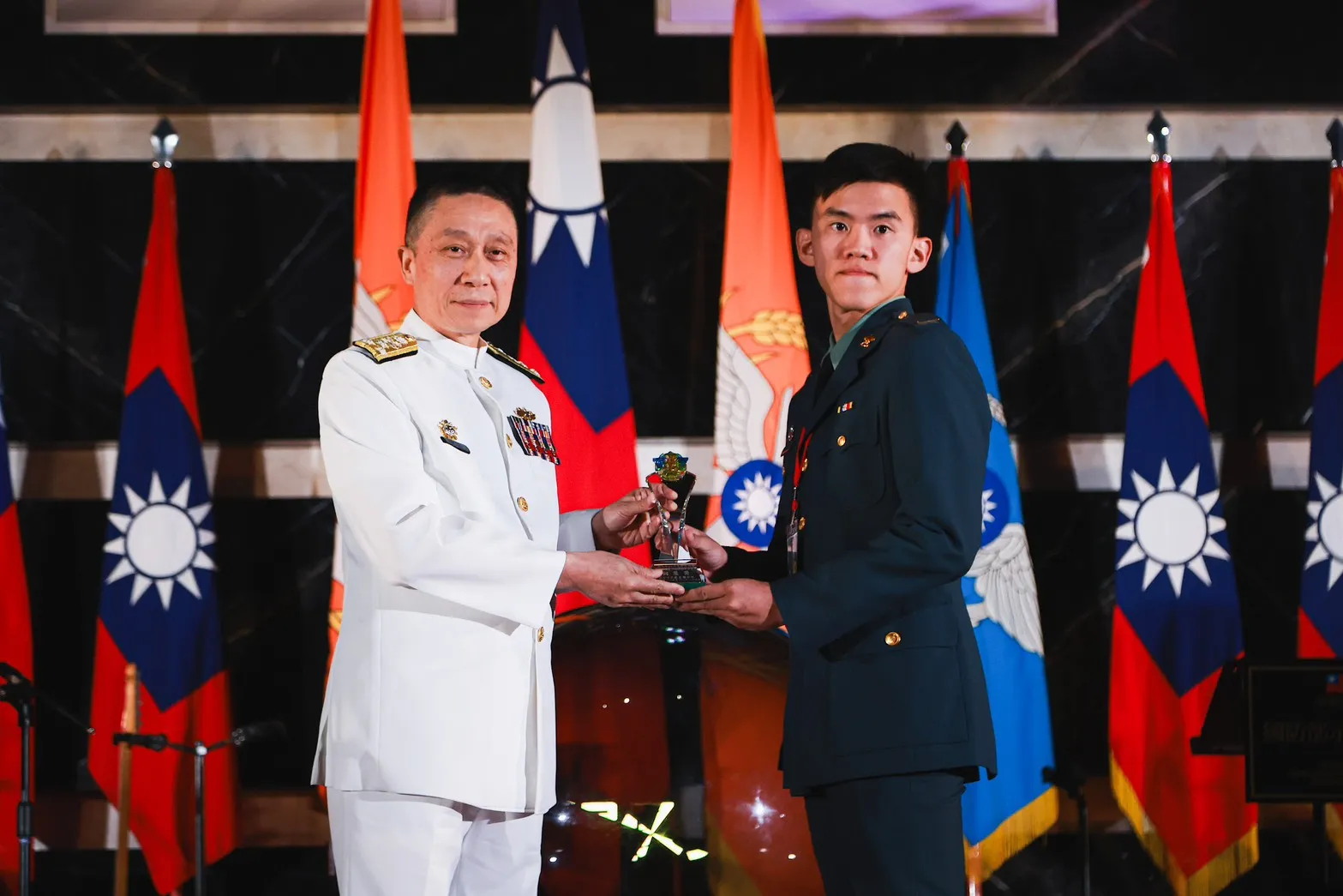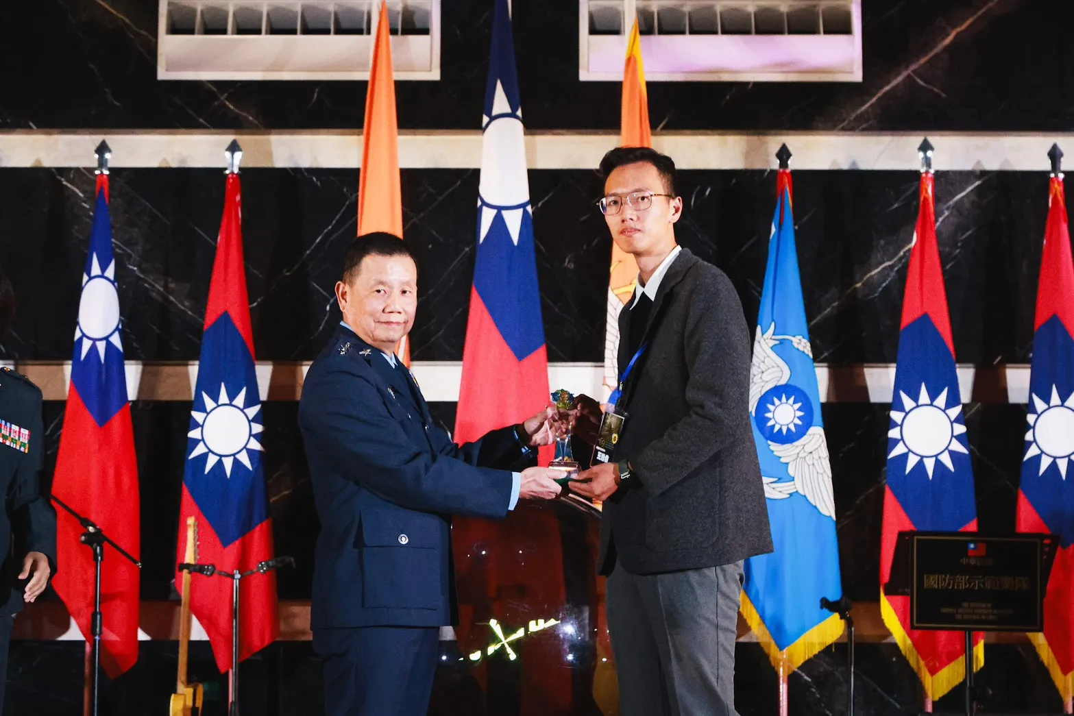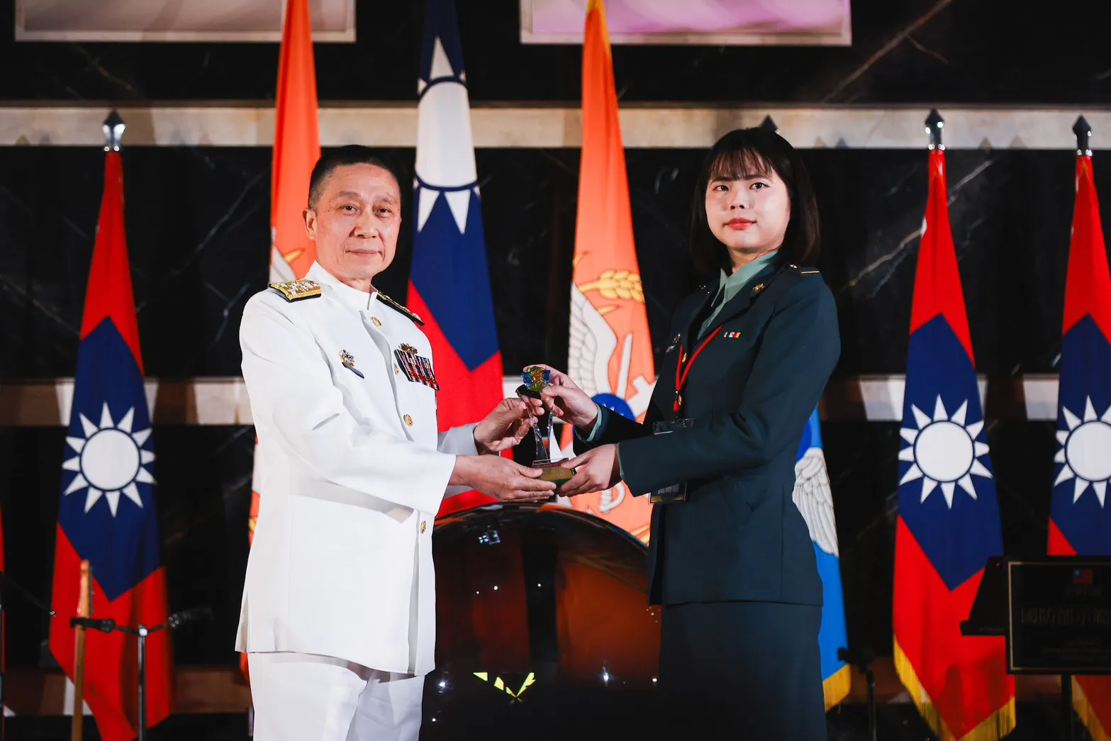 ․國防大學政戰學院學員生大隊學生三中隊 少尉 方元鴻、陳慧親、盧妍羽 「國防大學女生正步連-不懂苦難 勇往直前」 多媒體類軍事報導項銅像獎